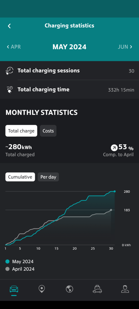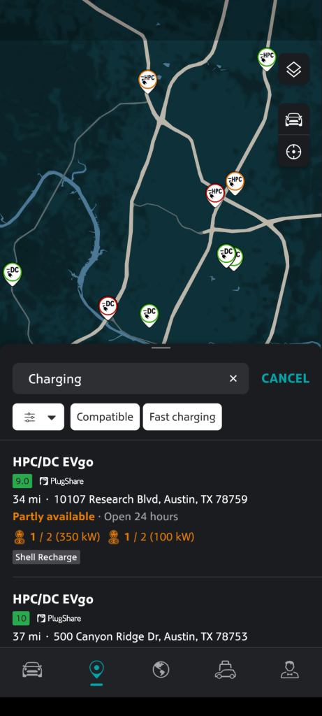 Charging settings are especially robust; surprising, given how limited they are in the car and the fact that this is not a dedicated EV platform or app . You can see state of charge, whether its charging or when it will start, how long until full. You can alter your charging and preconditioning plan. It shows really detailed charge history statistics with all kinds of breakdowns and even charging costs. The map is much easier to use than the in-car one and even does rudimentary route-planning. You can also send a destination to the car, which I use a lot because it’s so much easier to search in the app.